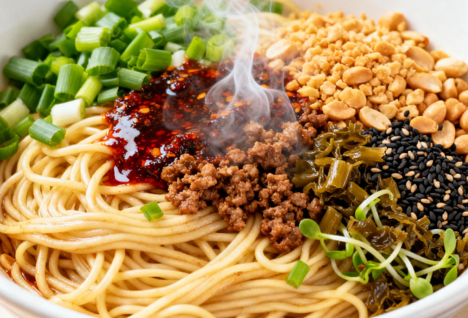宜宾燃面是四川传统名小吃,因“油重无水、点火即燃”得名,2011年入选四川省非物质文化遗产名录。其选用当地高品质碱水面,搭配碎米芽菜、小磨麻油、八角、山奈、芝麻、花生碎、核桃、辣椒、花椒等十余种辅料,面条煮熟后甩干水分,按传统工艺加油佐料拌匀。入口麻辣鲜香,芽菜干香脆嫩,花生碎与芝麻增添层次感,搭配一碗清汤更显风味。燃面不仅是宜宾人的日常早餐,更承载着码头文化记忆——旧时挑夫以一碗燃面果腹,劲道面条与浓香佐料,为劳作注入能量。如今,这道非遗美食已走出宜宾,成为川菜文化的代表之一,吸引无数食客专程品尝。